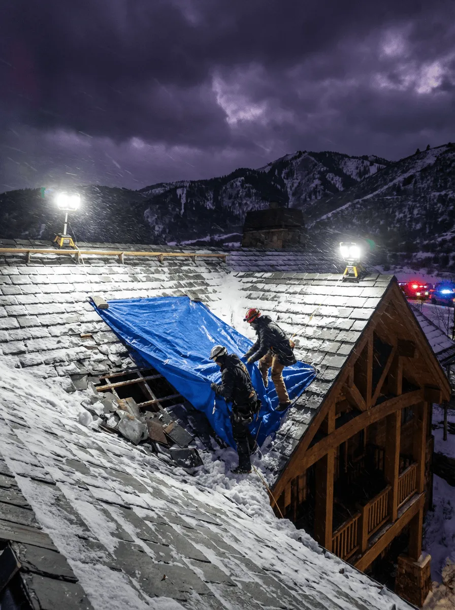 24/7 emergency response for storm or ice-dam damage in Park City. We tarp, repair, and restore quickly so you avoid further water intrusion during Utah mountain winters.